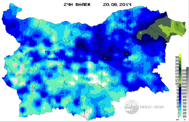 Сумата на валежа от сутринта на 18-ти до сутринта на 19.06.2014г. в района на Изт. България е от 60 до 85 l/m² във Варненска област и 90 до 155 l/m² в Добричка област. Общо от началото на седмицата /14-ти/ достигна 100-200 мм, при климатични норми около 50-60 мм за юни. От януари до края на юни валежите ще достигнат и годишната норма.